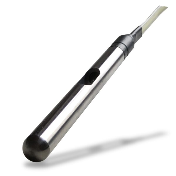 | Sonda pomiarowa o średnicy zaledwie 14mm albo 16mm i szczelności IP68 pozwala na stosowanie świstawki w otworach o bardzo małej średnicy. Sonda wykonana jest ze stali nierdzewnej, umożliwiającej wieloletnią pracę bez uszkodzeń. Elektroda pomiarowa została umieszczona wewnątrz obudowy sondy, aby nie była narażana na uszkodzenia podczas opuszczania w kanale prowadzącym. |