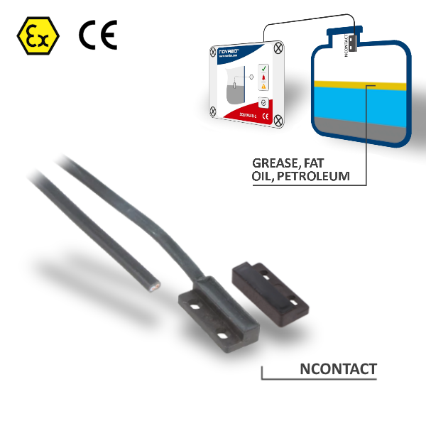 The reed switch detects the opening of the separator hatch, drain valve, or other movable elements by reacting to changes in the magnetic field. It enables quick transmission of the signal to the controller or monitoring system.