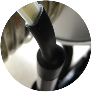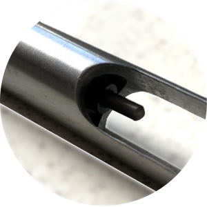 The fixing of the cable in the probe housing has been secured with an elastic material preventing the tape from being broken or being rubbed when leaving the guide channel. |