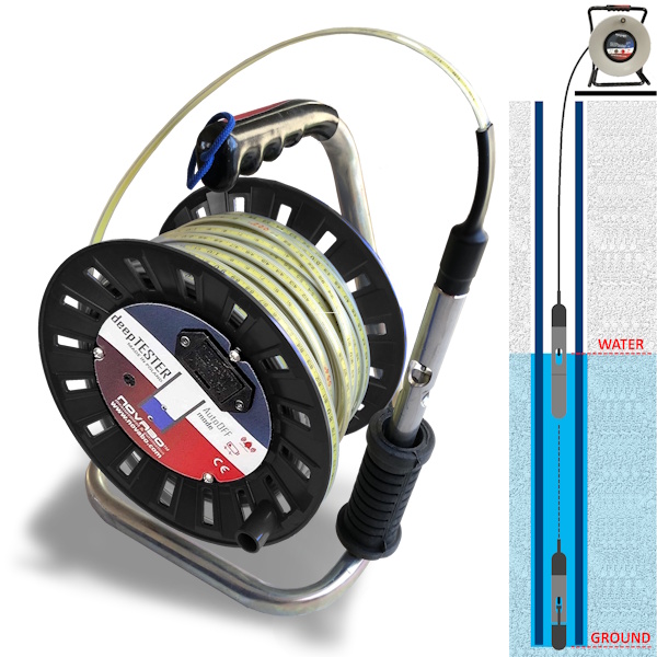 | The probe with a diameter of only 14mm or 16mm and IP68 tightness allows the use of deepTESTER in the holes of a very small diameter. The probe is made of stainless steel, allowing long-term operation without damage. The measuring electrode was placed inside the probe housing so that it would not be exposed to damage during lowering in the guide channel. |