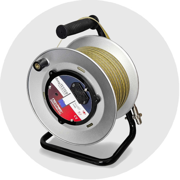 | The ergonomic handle of the deepTESTER was designed so that carrying the drum and working while unrolling and rolling the tape was a pleasure. The diameter and specially profiled shape under the fingers makes the deepTESTER stick firmly in the hand. |