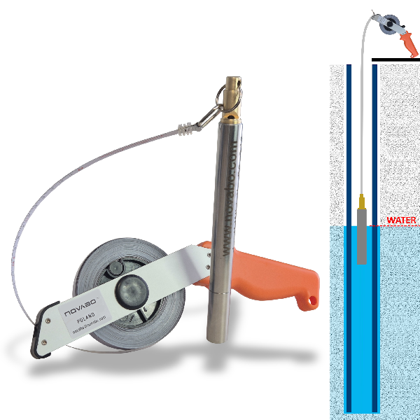 ANALOG WATER LEVEL WHISTLE (depth tester) – a portable water level indicator, also known as a hydrogeological whistle, designed for measuring the depth to the water table in piezometers, wells, and during drilling operations. The standard measuring set consists of a hydrogeological whistle and a measuring tape.